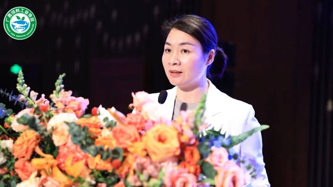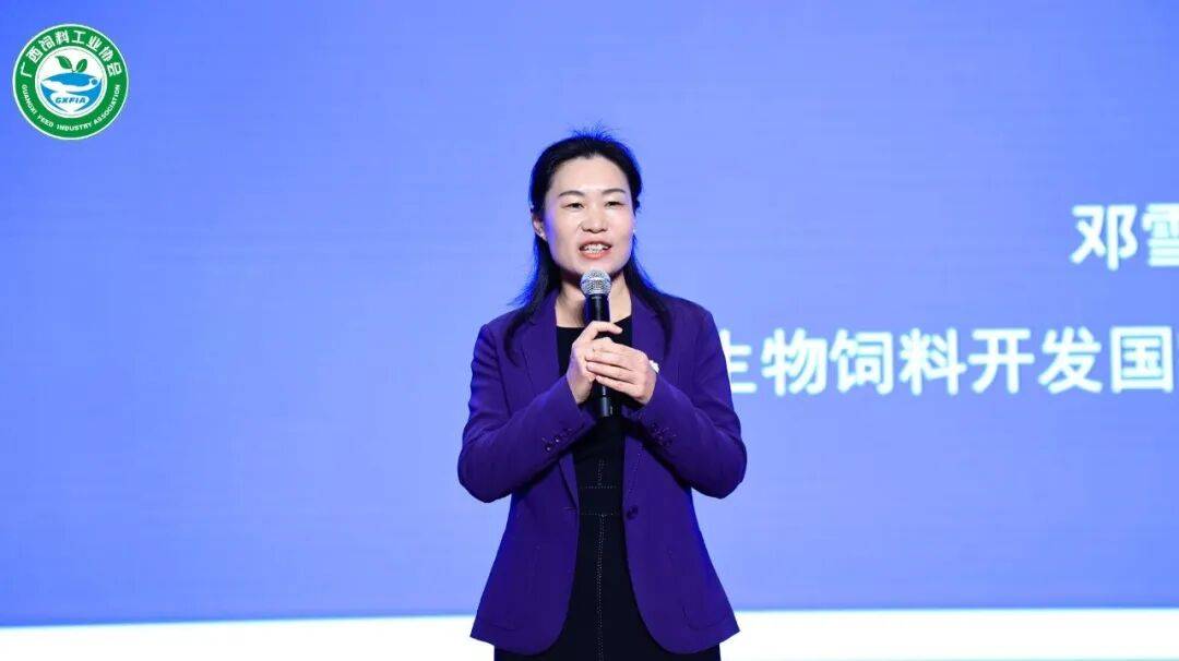 下午上半节学术报告由广西扬翔集团股份有限公司饲料事业部总裁林森主持。生物饲料开发国家工程研究中心副主任邓雪娟博士分享《生物饲料赋能广西饲料产业高质量发展》。详细介绍了生物饲料产业最新政策,团体标准,规范要求,市场典型的发酵饲料产品。