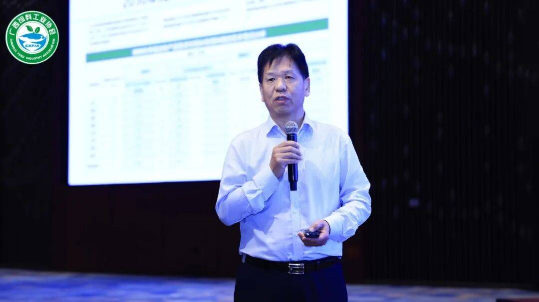 上午的学术报告上半节由广西饲料工业协会会长沈水宝博士主持。中国饲料工业协会副会长兼秘书长秦玉昌受邀作《节粮增效智慧未来—以餐厨剩余物开发与规范应用为例》报告。秦玉昌秘书长从行业发展与背景,节粮降本提效路径,餐余食物饲料化工艺,餐余食物饲料化利用研究,到餐余食物饲料产业化进展,深度剖析餐厨利用的必要性。