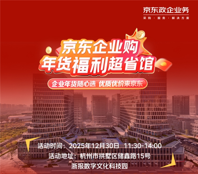 为了帮助企业高效破解年末采购难题,京东政企业务将在12月30日携重磅福利与沉浸式体验登陆杭州市浙报数字文化科技园,打造“年货福利超省馆”快闪盛宴,以“场景化体验+专属权益”双引擎,为园区企业送上省心、省钱、省时间的一站式采购解决方案,让年末福利采购不再“头疼”。