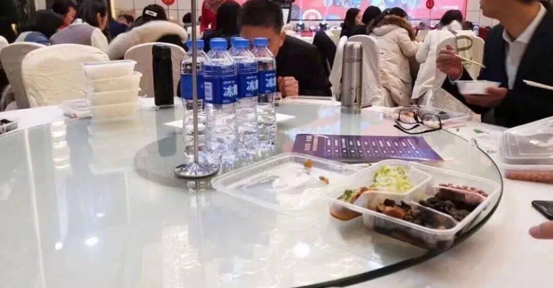 有家公司包下了酒店,却给员工们每人上了一份很简陋的盒饭,外加一瓶很便宜的矿泉水。