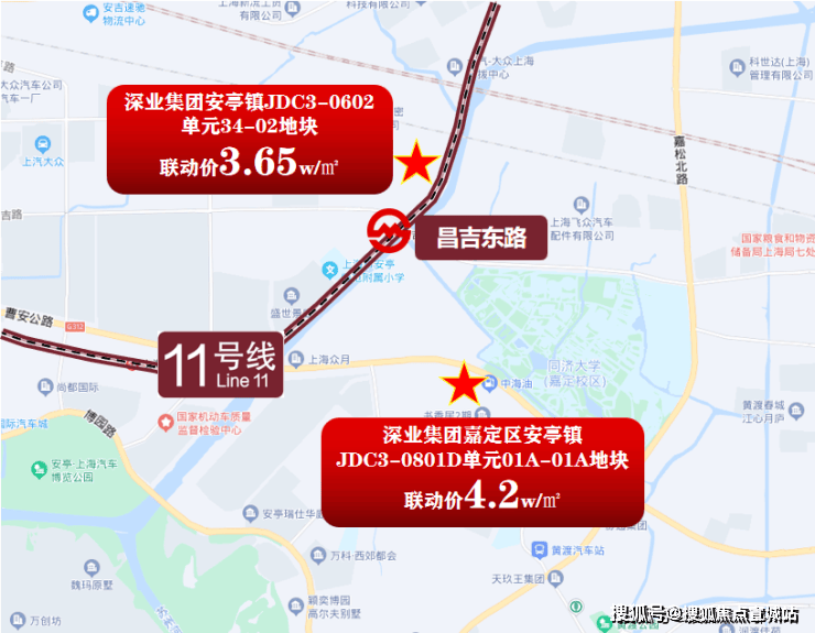 地铁11号线站虹桥火车站,且同区域仅约1公里的深业安亭项目联动价已达4.2万/㎡。