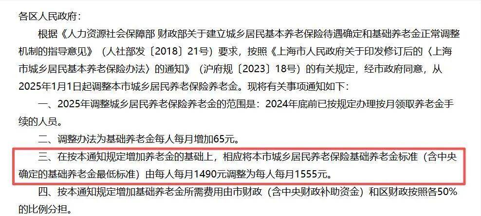 上海2025年城乡居民最低基础养老金是1555元,缴费超过15年一年加20元,