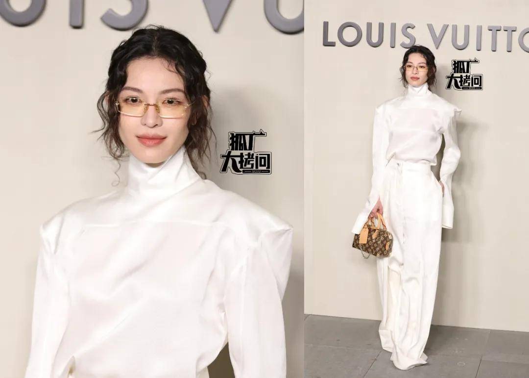 钟楚曦身上这件高领和大垫肩设计的白色上衣其实很难驾驭,要是没有时尚感的人分分钟会穿出喜剧人的感觉,但她搭配的是羊毛卷低马尾和温柔的妆容,再加上这副可谓整个造型点睛之笔的眼镜,使得她在已有的时尚感之外,还增添了几分高智感。不得不说,在时尚这方面她真的既有审美又有消化能力。