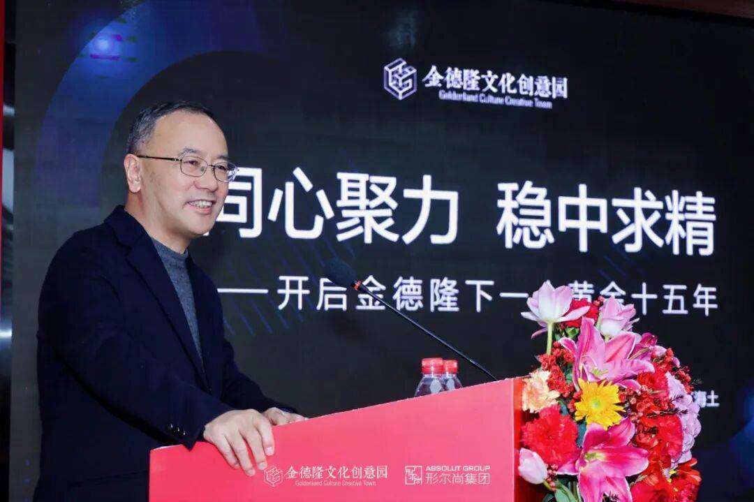 会议最后,金德隆文化创意园董事长丁海土以《同心聚力 稳中求精》为主题,进行了长达1小时的主旨演讲。讲话中,丁董表示:同心聚力是方向,稳中求精是行动。稳是目标,精是手段。会上,丁海土董事长承诺将做更“精心”的大家长,携运营团队提质服务,做到响应更快、赋能更专、链接更广、服务更暖。同时他也向所有的园区企业发出五点倡议:1.聚焦核心,做深专业。2.打开门户,主动链接。3.信任邻里,优先内购。4.拥抱变化,敢于创新。5.共享成果,互为背书。